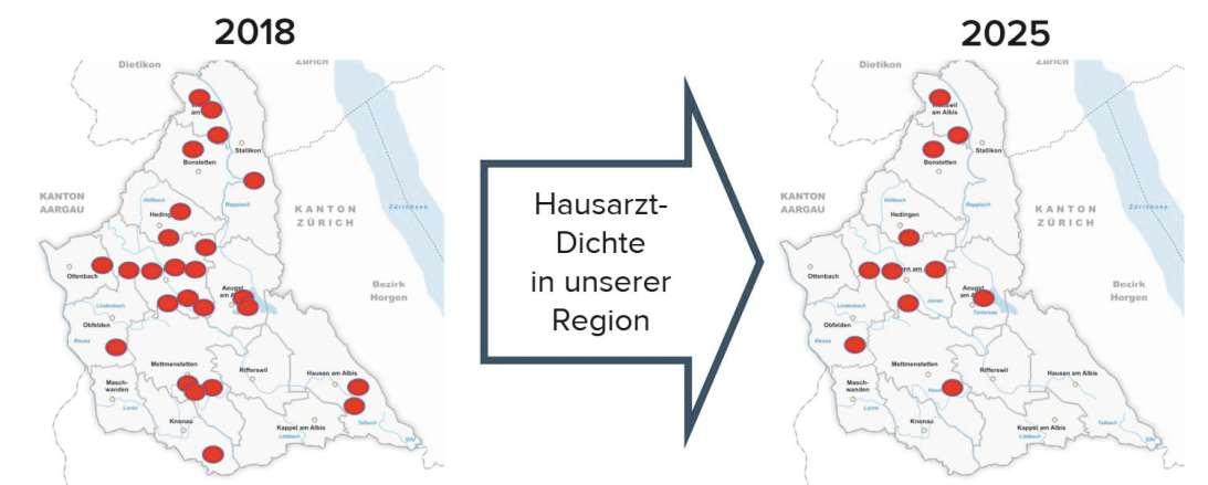 heitsversorgung der Bewohnerinnen und Bewohner und zugleich das Knonauer Amt für medizinisches Fachpersonal attraktiver machen. Denn der Fachkräftemangel ist die grösste Bedrohung für unser Gesundheitswesen. In drei Zonen, Norden, Mitte, Süden, sollen Gesundheitszentren die medizinischen Bedürfnisse der Bevölkerung abdecken und zudem eine Triage-Funktion wahrnehmen und zu Spezialisten überweisen. Ziel ist «ambulant vor stationär» Patienten und Patientinnen sollen möglichst zu Hause professionell betreut und gepflegt werden, und pflegende Angehörige sollen unterstützt und entlastet werden.