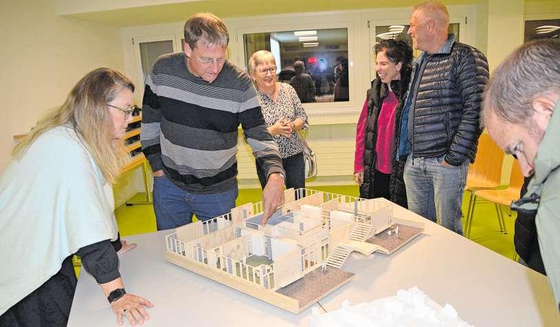 Aus dem Publikum kamen nach knapp einer Stunde Präsentation nur noch einige Detail und Verständnisfra gen welche vor Ort beantwortet werden konnten Beim abschliessenden Apéro bot sich Gelegenheit weiter zu diskutie ren. Auch über Elterntaxis, aber das ist ein anderes Thema: «Das lässt sich mit diesem Projekt nicht lösen», so Markus Gasser, Stadtrat Bau und Infrastruktur