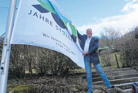 Reto Bernhard hisst die Flagge zum 900-jährigen Bestehen der