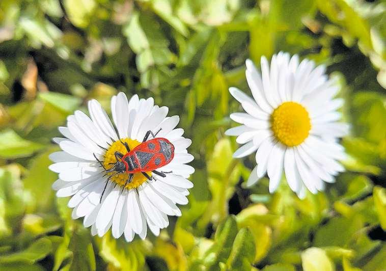 Der Frühling ist da!: Eine Feuerwanze geniesst die ersten warmen Sonnenstrahlen