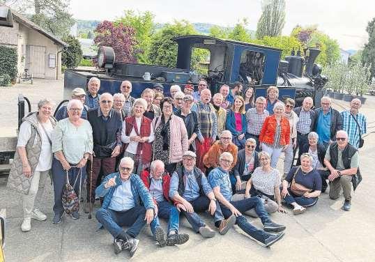 Volkes und die für uns heute selbstverständlichen Annehmlichkeiten vergleicht, so ist schon nicht mehr so klar, ob sich dies gelohnt hätte Nach diesem interessanten Einblick ins Leben vergangener Jahrhunderte ging es zurück in die Gegenwart Die Reisegruppe fuhr weiter zum nächsten Etappenziel, der Baumschule Zulauf in Schinznach Bei einem Apéro konnte man sich von den Strapazen des Mittelalters erholen Ein kurzer Rundgang und die anschliessende Bahnfahrt mit der firmeneigenen Dampfbahn zeigten der Bärenschar die Grösse dieses Unternehmens auf So manche und mancher sah den einen oder andern Baum oder Strauch schon in seinem heimischen