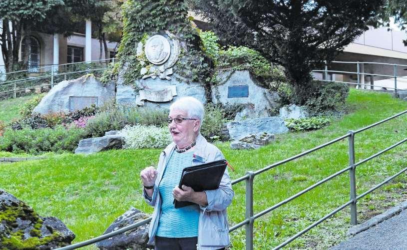 Margrit Siegrist erzählt auf ihrem letzten Stadtrundgang beim Georg Herwegh Denkmal