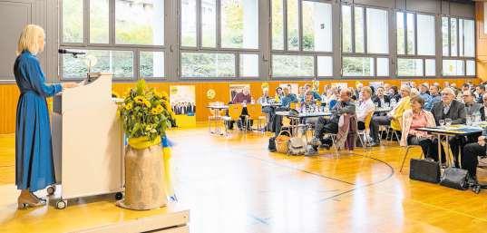 Nationalrätin und Parteipräsidentin Lilian Studer beim Überbringen der Grussworte der Mutterpartei im KV Saal in Liestal F OTO: Z VG