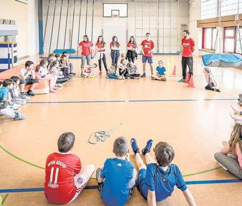 rige), die «Roten» (9 bis 10 Jahre) sowie die «Blauen» (10- bis 12-Jähri ge) neben Ballhandling, polysportiven Spielen, Passübungen und Torschusstraining sich vor allem mit verschiedenen Turnierformen ver gnügten, trainierten die «Orangen» (10 bis 14 Jahre) schon wie die Futsal Cracks der ersten Mannschaft Für alle Beteiligten galt es, die gesunde Mischung zwischen Training und Spass am Futsal zu finden. Trai niert wurden die Kids unter ande rem von 15 Trainern sowie von Fut sal Nationalspielern und Kaderspie lern der Futsal Maniacs.