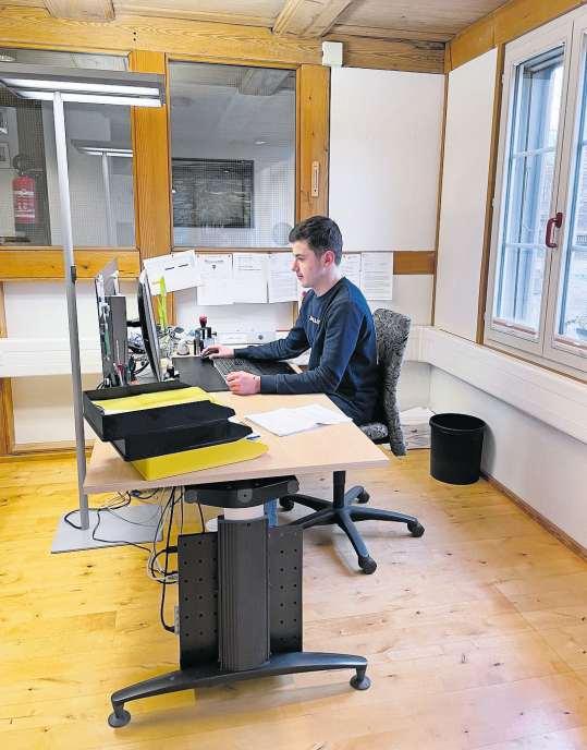 In seinem grossen Büro erledigt Luca Rätz als Lehrling die ihm aufgetragenen Arbeiten. Bild: