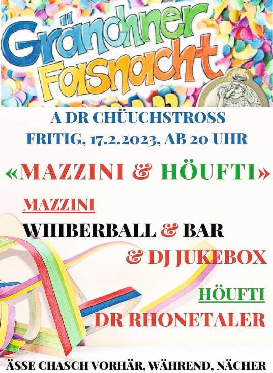 Die Kirchstrasse wird am Freitag zur Fasnachtsmeile Ob im Helvetia «Höufti» oder im Mazzini, wo die Wiiiberzunft zum legendären Wiiiberball einlädt Musik & Spass ist Programm! Das ganze Fasnachtsprogramm: www.fasnacht-grenchen.ch Freitag, 17. Februar, ab 20 Uhr, Restaurant Helvetia und Mazzini Grenchen.