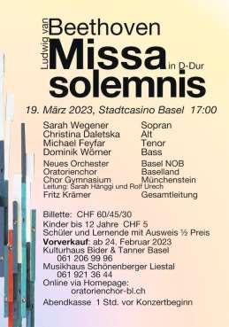 Bewerbungsfrist bis 26 Mai 2023 Mehr hier Kunstausstellung von Kunstschaffenden Eingliederungsstätte Baselland ESB www esb-bl ch JODLER OBE MIT THEATER FREITAG 31 MÄRZ & SAMSTAG 1 APRIL 2023 IN DER TURNHALLE RÜNENBERG 40 Jahre Baselbieter Konzerte 1 Preis des ARD-Wettbewerb 2022 Lukas Sternath Klavier Klaviersonaten von Franz Schubert und Ludwig van Beethoven Stadtkirche Liestal Dienstag, 21 März 2023, 19 30 h Tel 061 911 18 41 www.blkonzerte.ch Vorverkauf Einzelkarten: www.kulturticket.ch Tel. 0900 585 887 (Fr 1 20/Min ): Mo–Fr 10 30–12 30 h Liestal: Poetenäscht Basel: Bider & Tanner Eintrittspreis: 38 –, Schüler 15 –Abendkasse: 18 45 Uhr Kirchgemeindehaus 6