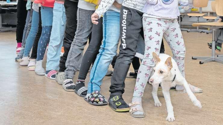 Stars im Schulzimmer Dass Hunde eine viel bessere Nase haben als Menschen, wird etwa beim Futterbeutel-Suchspiel deutlich –Nougat und Pistache finden die von den Kindern im Schulzimmer versteckten Futterbeutel innert kürzester Zeit