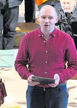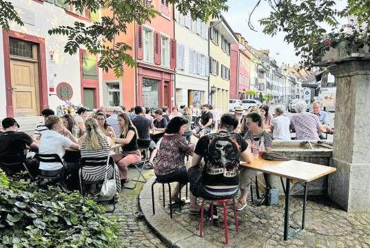 oben entwickelt hat. «Es handelt sich da um eine Assemblage der besten KernerTrauben aus dem ganzen Baselbiet», sagt Engel. Das Resultat: Ein aromatischer, fruchtiger Weisswein mit harmonischem Zusammenspiel von Süsse und Säure. Wie passend zum Abschluss dann das von Florian Schneider speziell zu diesem Anlass komponierte Lied: «Chumm schänk mer nomol yy!»