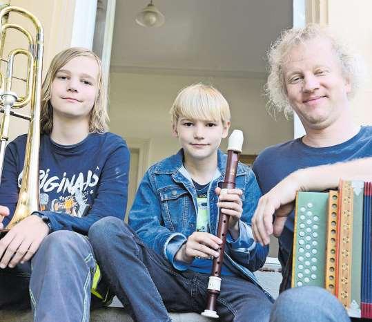 Schwyzerörgeli-Grossformation Tschoppehof Huusmusig Herzwärmer Trio Moritz-Gaudenz-Simon Street-Violins der JMS Gelterkinden
