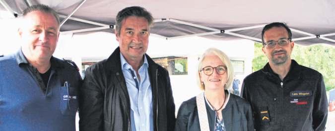 Stapi François Scheidegger mit seiner Gattin Veronika beim Feuerwehrzelt mit Kommandant Thomas Maritz (links) und Lars Wingeier