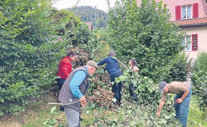 Herbstliches Hecken-Schnittgut wird aufbereitet, um die neue Igelburg zu errichten, die hoffentlich auf den Winter hin neue Bewohnerinnen findet. Fotos: zVg