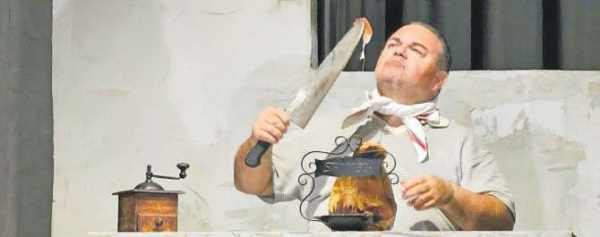 Lecker: Der Wirt gönnt sich ein paar Happen vom Beinschinken.