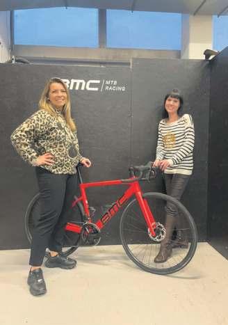 Das Fahrrad von BMC geht an Claudia Jost (links) aus Bettlach. Die Preise übergeben hat Caroline Rentsch von der Schulverwaltung Grenchen (rechts). Bild: zvg