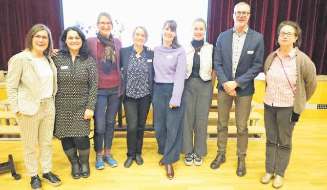 Engagieren sich für Familien: Katja Löffler, Drita Ibrahimi, Doro Joerin, Sabrina Buess, Lisa Faust, Annina Schmid, Thomas Eugster und Monika Feller (v.l.). Foto: B. Eglin