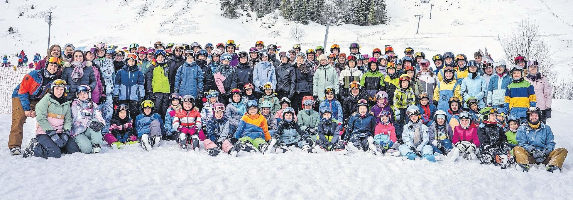 nach der Ankunft im Lagerhaus nahtlos fortsetzte. Unterstützt von rund 35 engagierten Leiterinnen und Leitern fühlten sich die Kinder schnell wie zu Hause. Neben dem täglichen Schneesport auf der Piste stand vor allem das