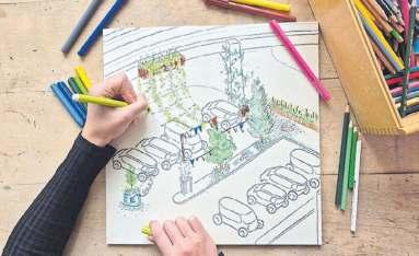 Die Vision einer blau-grünen Stadt der Zukunft nimmt weiter Gestalt an: Kinder und Erwachsene bemalen ihre Puzzleteile für das einzigartige 360 °-Ausstellungsstück im Mitmach-Museum.