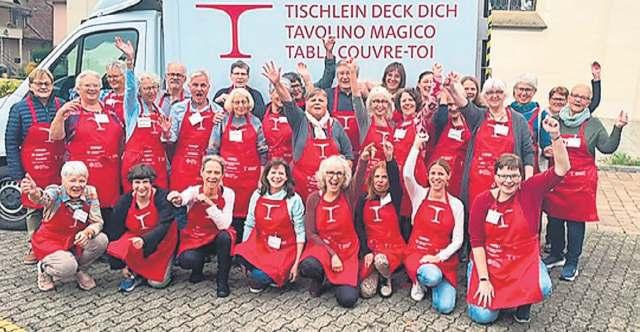 Das «Tischlein deck dich»-Team Entfelden sucht Verstärkung. Dieses Bild entstand am Eröffnungstag im Oktober 2024. BILD: ZVG