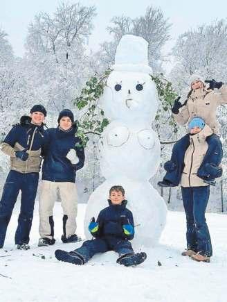Winterprojekt: Mit viel Einsatz und Kreativität entstand eine über 2,5 Meter hohe Schneefrau, die stolz in der winterlichen Landschaft thront. Ein gelungenes Gemeinschaftswerk – und ein echter Hingucker.
