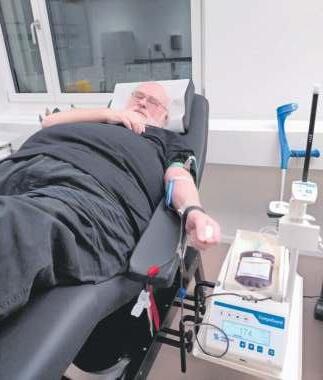 Chris Heller, der zuletzt regelmässig im modernen Blutspendezentrum Zofingen gespendet hat, wird das hilfsbereite und immer aufgestellte Team sehr vermissen. Sein Appell an die Mitmenschen: «Geht regelmässig zur Blutspende. Es tut gut, und jede Spende kann Leben retten! Ich habe mir immer gesagt, dass vielleicht auch ich einiges Tags mal froh, um Blutreserven bin. Jeder Tropfen zählt!» Die Blutspende SRK Nordwestschweiz bedankt sich herzlich bei Chris Heller für sein grossartiges Engagement über all die Jahre. NADJA HÄNNI Chris Hänni beim Blutspenden. BILD: ZVG
