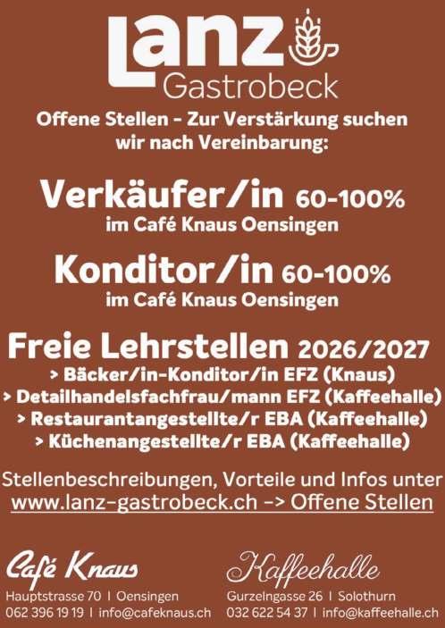 Schalterzeiten statt. Gegen Baugesuche kann innert der Auflagefrist bei der Stadt Olten, Direktion Bau, Dornacherstrasse 1, 4601 Olten schriftlich Einwendung erhoben werden. Die Einwendung hat einen Antrag sowie eine Begründung zu enthalten. Legitimiert zur Einwendung ist nur, wer ein eigenes schutzwürdiges Interesse geltend machen kann. Rothrist, 5. Februar 2026