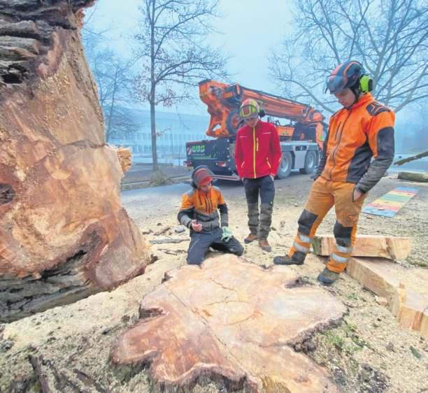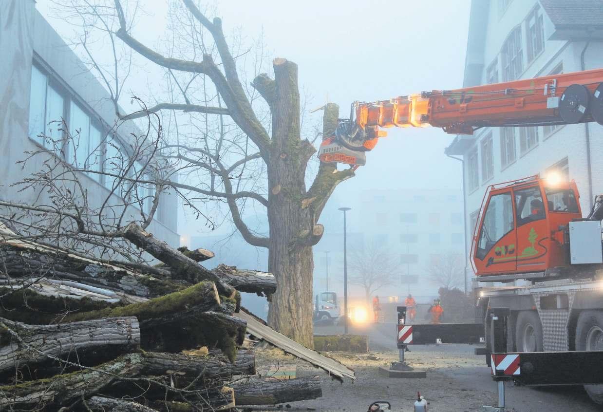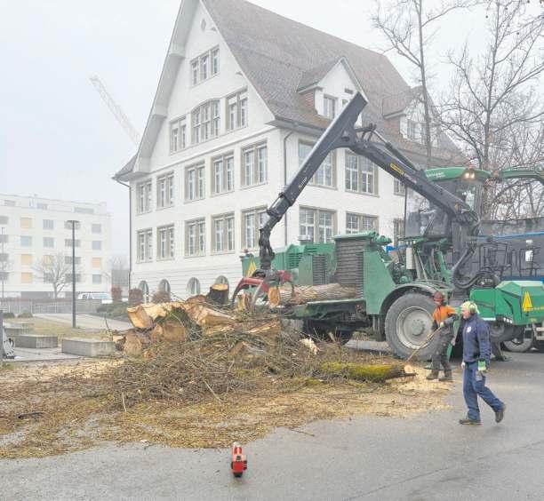 Schnellzugtempo. «Das ist effizienter und an diesem Standort zwischen der Aula und dem Schulhaus sinnvoll und sicherer», sagt Usteri. Der Fällkran kann über 30 Meter hohe Bäume und über 80 Zentimeter dicke Stämme fällen. Normalerweise wird er beim Holzschlag entlang von SBB-Linien, Autobahnen, Kantonsstrassen, Hochspannungsleitungen und bei Alleebäumen eingesetzt.