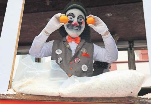 pen hatten Kinder auf ihren Wagen geladen und gaben den Binggis so die Gelegenheit, die Fasnacht hautnah zu erleben und ihre süssen Gaben von oben herab an die Umstehenden zu verteilen. Die Konfettikanone der «drümmligä Schwybogäbrünzler» feuerte trotz verschärften Auflagen anlässlich des Vorfalls im Wallis ihr Konfetti-Geschütz ab und sorgten zeitweise für einen bunten