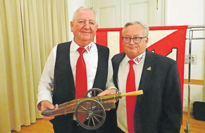 Zum Abschied und als Dank für sein Schaffen erhielt Geri Müller (links) eine kleine Kanone, überreicht von Präsident Marc Nyfeler.