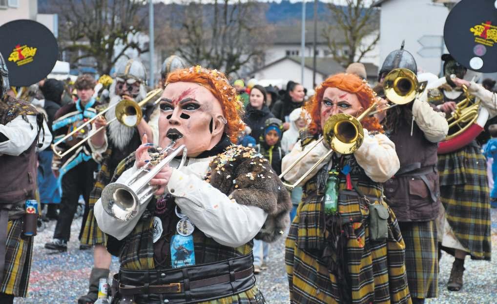 U18-Faustball-WM aufmerksam, die vom 23. Bis 26. Juli in Reiden stattfinden wird. Die Faustballerinnen und Faustballer verwandelten die Umzugsroute in ein Spielfeld, verteilten aber auch grosszügig Goodies. Den Schluss machte die einheimische Guggenmusik Sträggelebrätscher mit ihrem Motto «e Schott näme mer no», bevor die Fasnächtlerinnen und Fasnächtler anschliessend an den Umzug auf dem Mätteli bei Speis und Trank und fetziger Guggenmusik weiterfeierten – bei durchaus schottischem Wetter.
