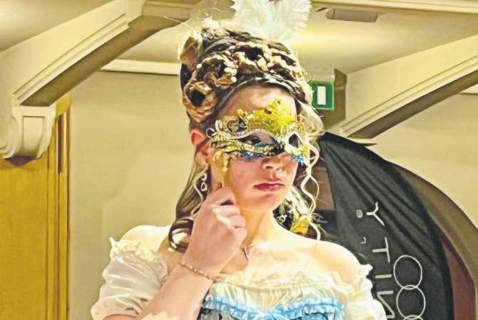 Die Zweitjahr-Lernenden haben das Motto «Venezianischer Maskenball» kreativ umgesetzt, wie dieses geflochtene Haarkunstwerk eindrucksvoll zeigt.