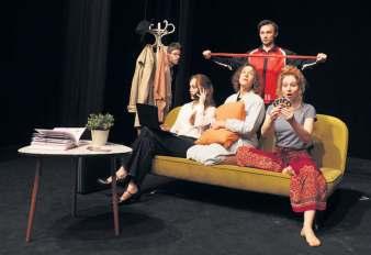 20 Uhr: Barfuss im Park. Romantik trifft Realität in möbelloser Dachwohnung; Konflikte mit exzentrischem Nachbarn und Mutter. Schopfbühne, Schützengasse 4