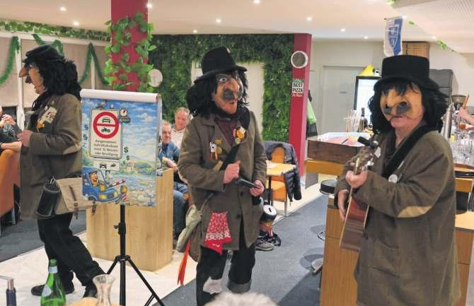Vor allem US-Präsident Donald Trump, der Blitzkasten in Birsfelden und natürlich die Stadt Zürich – sie alle standen im Fokus der Schnitzelbänke 2026. Mit spitzer Zunge, treffsicheren Pointen und schonungslosen Versen nahmen die acht Schnitzelbankgruppen auf ihrer traditionellen Beizentour durch Oberdorf und Niederdorf das lokale wie auch das nationale Geschehen aufs Korn. Das Publikum dankte es ihnen mit herzhaftem Gelächter und viel Applaus. Ob Gemeindepolitik, Verkehrsplanung oder internationale Schlagzeilen – kaum ein Thema blieb verschont. Die Schnitzelbänkler verstanden es einmal mehr, Alltägliches in überraschende Reime zu verpacken und brisante Themen mit feiner Ironie zu würzen. Für eine besondere Überraschung sorgten Josephine, Trudi und Hildi –eine namenlose Dreierformation der Ring- und Rasen-Aufsichtsbehörde. Als Überraschungsgäste betraten sie das vollbesetzte FCO-Clubhaus («Schutti») und hielten gezielt Ausschau nach den «Schuttibuebe». Als Trost für das Kunstrasenersatz-Debakel des FCO verpassten sie ihnen augenzwinkernd ein Pflaster auf die Stirn – sehr zur Erheiterung der Anwesenden.