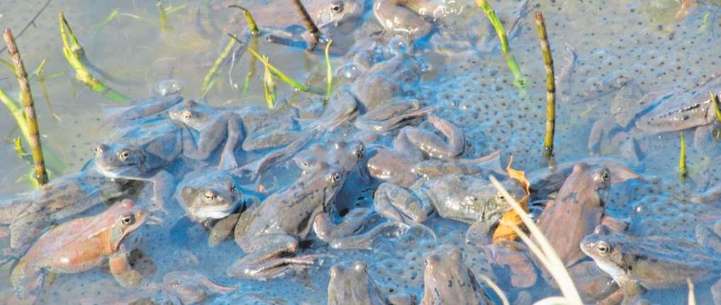 Dann gehts weiter zum Stampfiweiher, wo sich den Augen von Hans Althaus ein gefreutes Bild offenbart. Laichklumpen liegt an Laichklumpen, die Grasfrösche zeigen sich in den Morgenstunden aber nur vereinzelt. «Es ist noch zu kühl», sagt Althaus, erst am Nachmittag würden sich die Frösche an die Wasseroberfläche begeben. «Erdkröten haben noch nicht gelaicht», erklärt Althaus weiter, das erkenne man daran, dass noch keine Laichschnüre im Weiher zu finden seien.