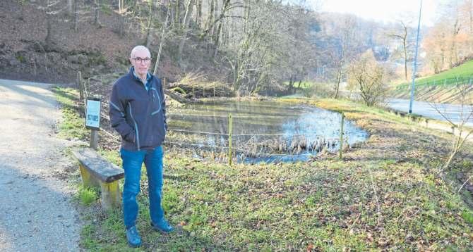 Amphibienkenner Hans Althaus beim Stampfiweiher an der Mühlethalstrasse. BILD: THOMAS FÜRST