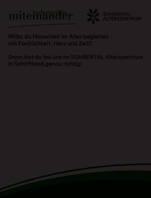 Pro Senectute Aargau. Impulsveranstaltung mit Autorin Verena Steiner. Die rund 90-minütige Veranstaltung richtet sich an Menschen aller Generationen und ist kostenlos. Zum Abschluss Apéro mit Gelegenheit zum Austausch. Zur besseren Planung wird um eine Anmeldung gebeten: