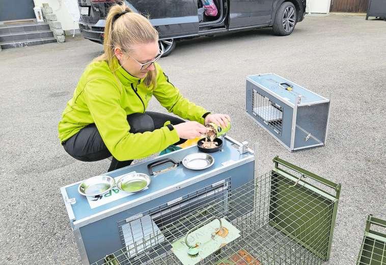 Vorbereitung ist alles: Manuela Brüderlin füllt die Näpfe, die sie anschliessend in den Lebendfallen platziert. FOTOS: ZVG