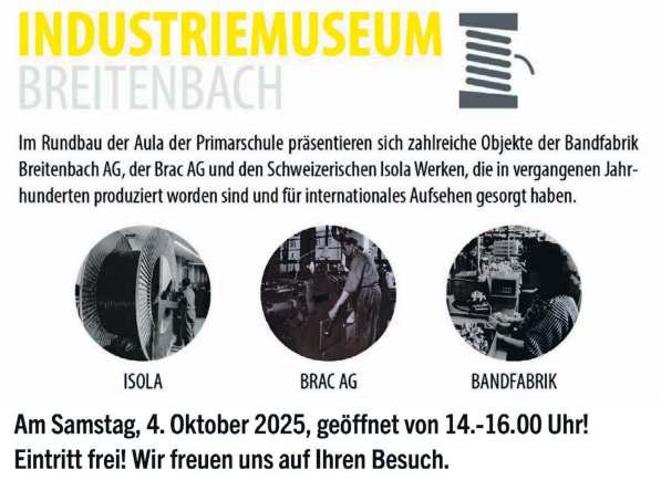 Die Abdankungsfeier findet am Samstag, 25. Oktober 2025, um 14.00 Uhr in der reformierten Kirche Breitenbach statt; Urnenbeisetzung im engsten Familienkreis.