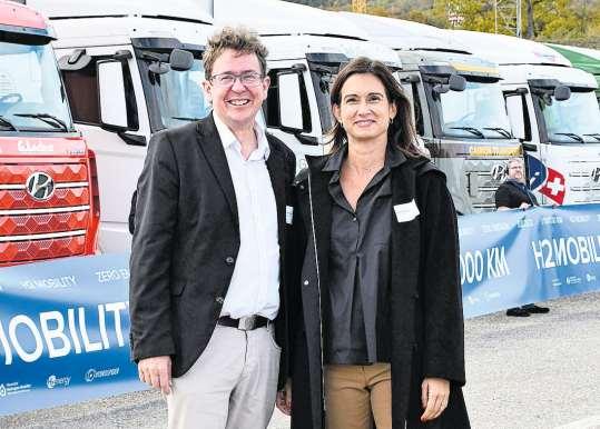Wohl etwas mehr als fünfzig Personen waren gekommen, um den Meilenstein mitzuverfolgen Darunter befanden sich neben Medienschaffenden und Unternehmens und Vereinsvertretern auch Politiker und Politikerinnen Die beiden prominentesten waren wohl die Aargauer FDP Nationalrätin Maja Rini ker und der Berner SVP Nationalrat Albert Rösti Letzterer machte kürzlich ebenfalls mit seiner Kandidatur für den Bundesrat von sich reden Riniker und Rösti präsidieren gemeinsam mit der Zürcher FDP Nationalrätin Doris Fiala die parlamentarische Gruppe Wasser stoff Rösti zeigte sich beeindruckt über den Stand der Brennstoffzellen Technologie Sie habe sich in kurzer Zeit stark weiter entwickelt, stellte er fest Nun sei es an der Politik, Rahmenbedingungen zu schaffen, dass Wasserstoff Mobilität möglich ist Rösti nannte Baubewilligun gen und Steuerbefreiungen als Beispiele