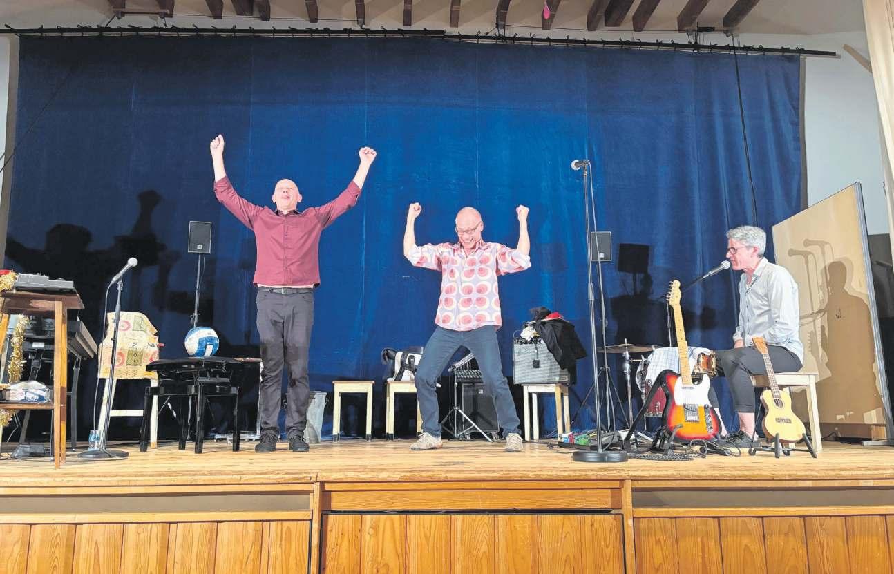 feiert in diesem Jahr nicht nur den Abschied, sondern auch sein 30-Jahr-Jubiläum. Seit 2017 werden Buser und Suter vor allem musikalisch durch den Zürcher Musiker Michael Wernli unterstützt. Diesem kam am Freitag auch die Aufgabe zu, die beiden Komiker stets an ihre Vergänglichkeit zu erinnern, indem er in sporadischen Abständen die noch verbliebenen Minuten bis zum endgültigen Ende abzählte. «Ihr habt 83 Minuten, um euch zu verabschieden», startete Wernli den Countdown zu Beginn der Vorstellung. Das Thema Vergänglichkeit zog sich wie ein roter Faden durch das gesamte Stück. Dazu gab es Humoristisches – «Vergänglichkeit isch, wenn statt Bier nur no