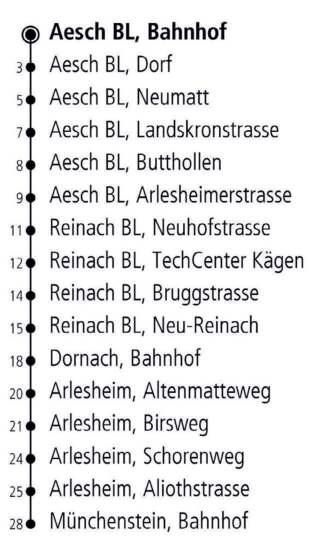 Aesch, Arlesheim, Dornach, Gempen, Hochwald, Münchenstein, Pfeffingen und Reinach