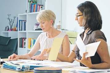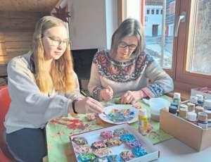 In der Plakettenwerkstatt: Thea Hübscher (l.) und Manuela Pflugi verwandeln bereits seit fast 20 Jahren die Laufner Fasnachtsplakette in kleine Kunstwerke. FOTO: ZVG