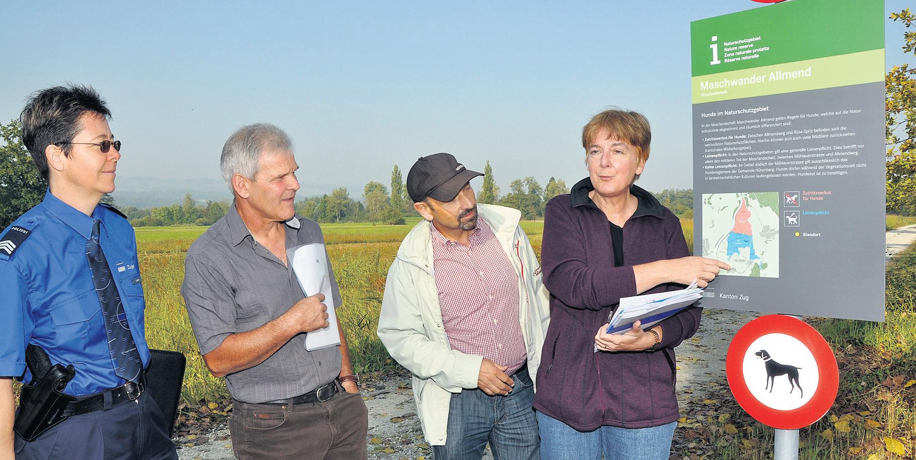 Biker, Wanderer, Spazierende mit Hunden ohne Leine, die sich im Naturschutzgebiet aufhalten: Der Erholungsdruck auf die 123 ha grosse und fast vollständig auf Zuger Gebiet liegende Maschwander Allmend hat in den vergangenen Jahren stark zugenommen. Besonders gefährdet ist das Gebiet zwischen Allmendstrasse und Rüss-Spitz mit seltenen Brutvögeln und Pflanzen.