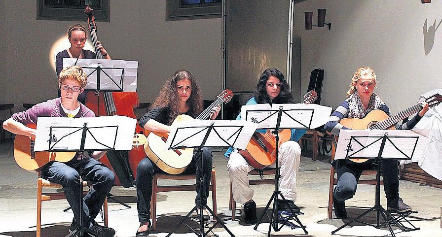 Das Trio Albisgruess. (Bilder zvg.) Das Gitarrenensemble mit Kontrabass von der Musikschule Knonauer Amt.