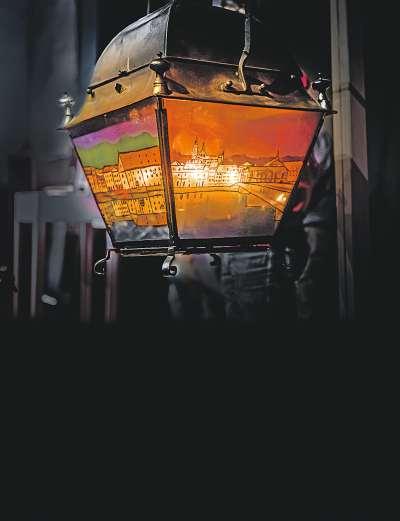 Die historische Strassenlaterne mit den neu gestalteten Scheiben erhellt im Jubiläumsjahr der Stadt Solothurn jede Woche einen neuen Ort mit ihrem warmen Licht.