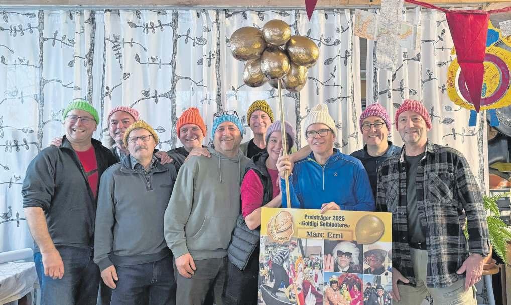 Sarmenstorf In Sarmenstorf erhalten besonders engagierte und leidenschaftliche Fasnächtler mitunter eine ganz spezielle Auszeichnung: die Goldigi Soiblootere. In diesem Jahr durfte sich Marc Erni über die dezent duftende Auszeichnung freuen. «Damit habe ich überhaupt nicht gerechnet», erklärte er total überrascht an der Übergabe