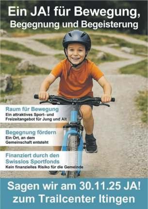 Das Trailcenter, über das wir in Itingen am 30. November an der Urne abstimmen, bietet genau diese Chance. Kinder können von Klein auf den Umgang mit dem Velo und die Rücksicht auf die Natur lernen. Und auch für ältere Personen ist es ein guter Übungsort. Sie sind mit dem Elektrobike in der Natur unterwegs und oft wenig geübt, was Sicherheit beim Fahren angeht. Es ist deshalb eine einmalige Gelegenheit für Itingen, um ein durch den Swisslos Sportfonds finanziertes Sport- und Freizeitangebot für alle zu realisieren. Das Projekt ist solide durchdacht.