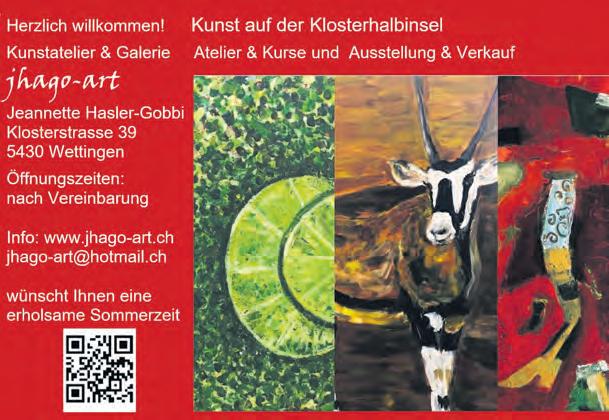 IMPRESSUM: Verlagsbeilage zur «Limmatwelle», Donnerstag, 26. Juni 2025 Auflage: 40 185 Expl. (WEMF 2024) Herausgeber: CH Regionalmedien AG, Kronenplatz 12, 5600 Lenzburg Leiter Wochenzeitungen: Stefan Biedermann Redaktion: CH Regionalmedien AG, Verlagsredaktion, Carolin Frei, verlagsredaktion@chmedia.ch. Redaktionelle Mitarbeit: Melanie Bär, Irene Hung-König, Romi Schmid Layout: CH Regionalmedien AG Anzeigen: Thomas Stadler, thomas.stadler@chmedia.ch, Telefon 058 200 53 73 Druck: CH Media Print AG, Aarau