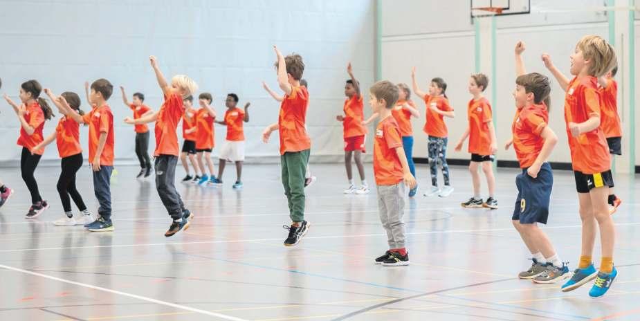 Freude an der Bewegung: Die Kinder hüpfen gemeinsam in der Turnhalle.