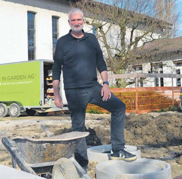 Lutz Fischer posiert auf der Baustelle des neuen