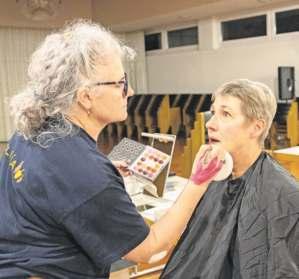 Yvonne Berchtold wird für die Rolle «Gabi Zuberbühler, Frau vom Geburtstagskind» geschminkt. gk